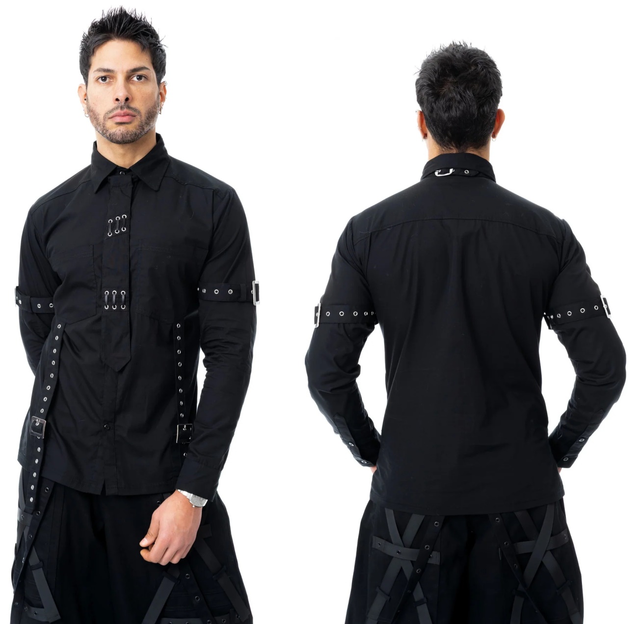 Das legere Dress, von Jawbreaker, ist wahlweise als Kleid oder Top tragbar. Die Seiten sind länger geschnitten. Der Rücken ist mit einer Schnürung versehen. Es hat einen mystischen grauen Aufdruck, aus Totenschädeln.